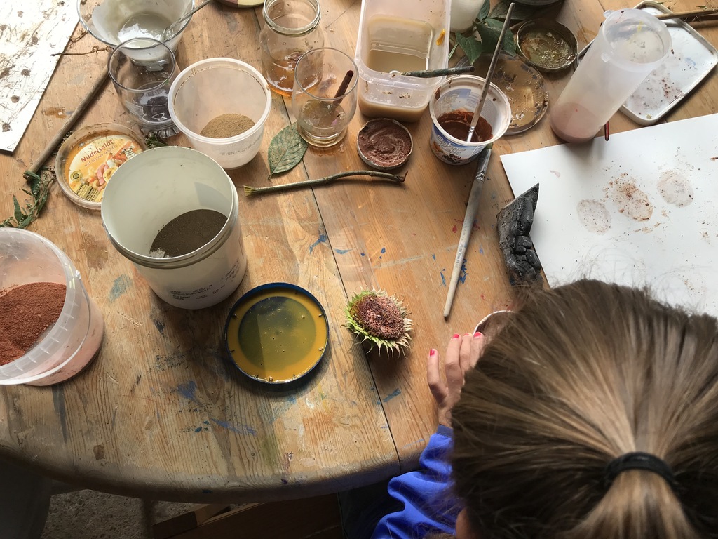 Die Welt ist reich an Naturfarben. Wir wollen selber Farben herstellen und damit malen. Spielerisch gestalten und kreativ Experimentieren: Das Entdecken und Forschen mit farbigen Erden Blütenblättern, Rinden, Steinen und Pflanzen führt zu tollen Farben und anschließend zu spannenden Bildern.